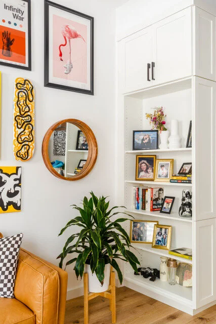 The client preserved the original finished of the apartment. Updated the original floors with fresh stain and coating. New base cabinets with match the new artistic wall tiles. Keeping the original glass cabinets and adding undercabinet lighting to brighten up the space without touching the ceilings.
